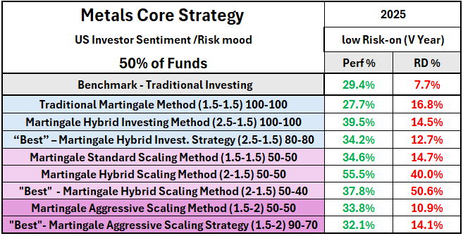 This strategy has a portfolio structure with a primary focus on metals, complemented by energy and equity indices to achieve diversification. It emphasizes an increased allocation to gold, recognizing its historical resilience during periods of market stress.