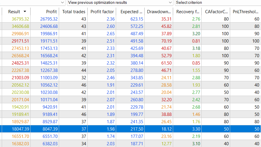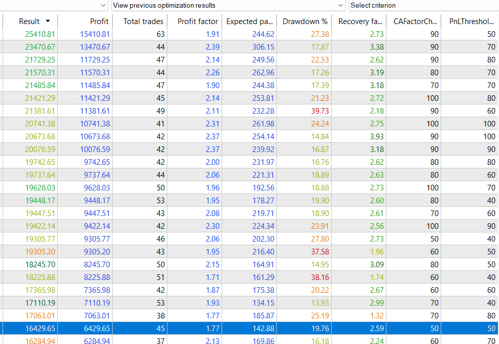 This is the result with fixed CFactor and PnL Threshold % Changes at 50% and it is the strategy described in the previous section.