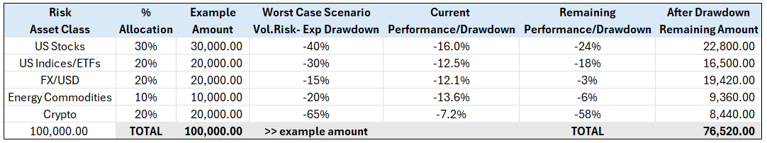 To achieve in creating a strategy with high return/reward potential we invest in risk-assets. These, however, are investments that carry a high degree of volatility and uncertainty regarding their future value. Risk-assets have the potential for significant price fluctuations, which means they can yield substantial gains but also carry the risk of major losses. The portfolio therefore includes: