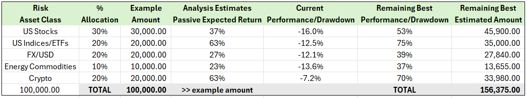 The below takes into account multiple figures for estimating the upside potential. These figures include among others historical data and analysts estimates. It also takes into account that the startegy is passive only even though regular rebalancing takes place and other actions such as averaging when appropriate, serving the best interest of the portfolio and followers of the strategy.
