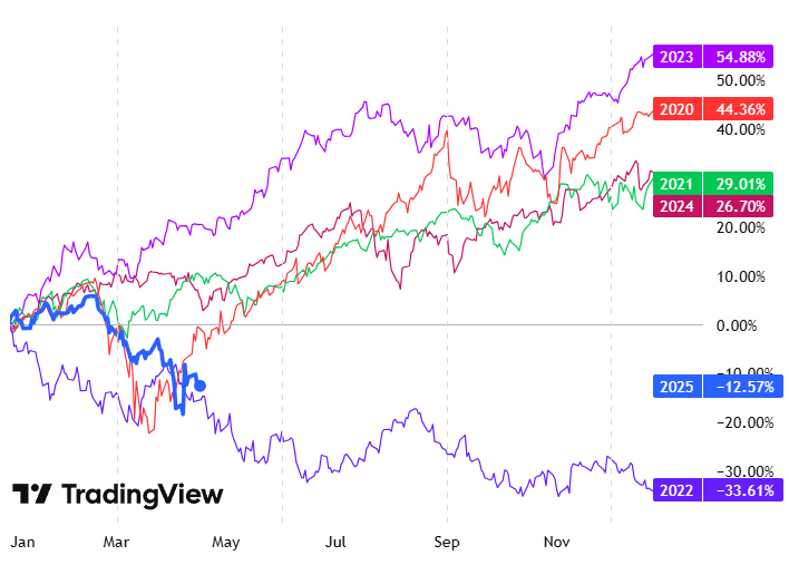 In 2022, it faced a sharp decline of approximately 33% from its peak due to rising interest rates and economic uncertainty. The following years saw a recovery, particularly in 2023. However, in 2025, the index declined once again by -12.57%, driven by macroeconomic uncertainties that triggered a risk-off sentiment among investors.