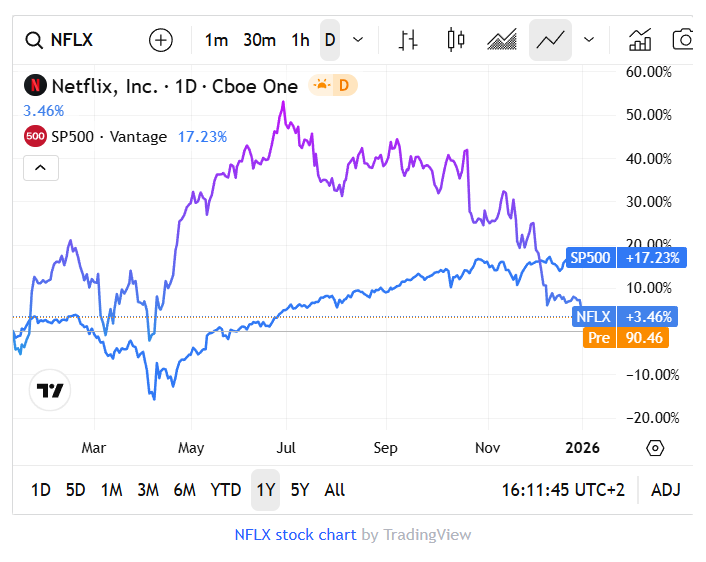 Netflix, Inc. engages in providing entertainment services. It also offers activities for leisure time, entertainment video, video gaming, and other sources of entertainment. It is one of the strongest-performing stocks of 2025, with analysts forecasting up to a 23% upside over the next year.