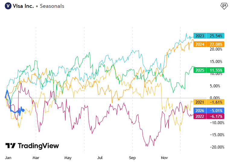 V (VISA) Seasonals – Performance per Year